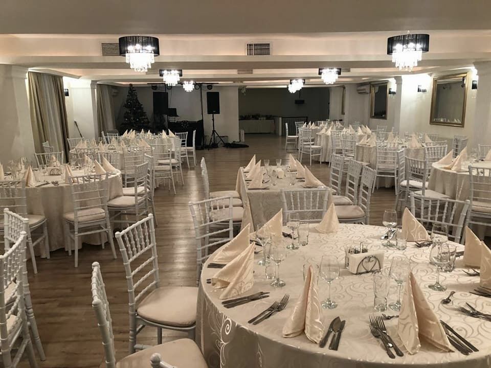 Salonul nostru are o capacitate de 130 sitting sau 250 standing, fiind locatia perfecta pentru orice eveniment (nunti, botezuri, cununii religioase si civile, aniversari, conferinte, evenimente corporate, baluri licee si facultati, reuniuni de clasa, agape, petreceri de sarbatori, receptii si dineuri, lansari de produse si marci, simpozioane, banchete, onomastici, cocktail-uri).